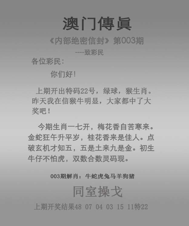 003期:内部1肖1码(鼠06)信心100%请把握机会! |